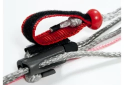 La poignée de trim permet de trimmer l’aile plus facilement (autrement dit : elle permet de réduire plus facilement la puissance du kite). De plus, elle est munie d’un velcro qui évite à la corde de se balader une fois que vous avez trimmé. Il suffit de « coller » la poignée au taquet coinceur sur le velcro. Vous l’aurez à portée de main en permanence !