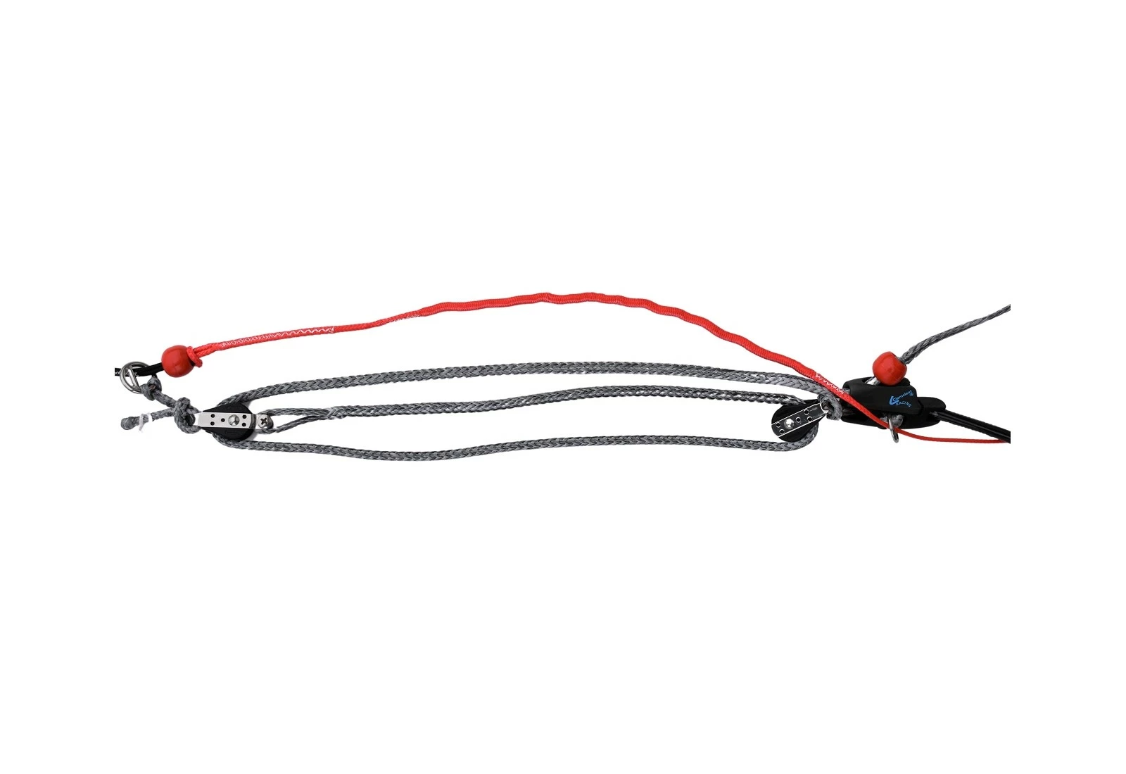 La barre de race dispose d’un énorme depower, avec un système de double poulie.
