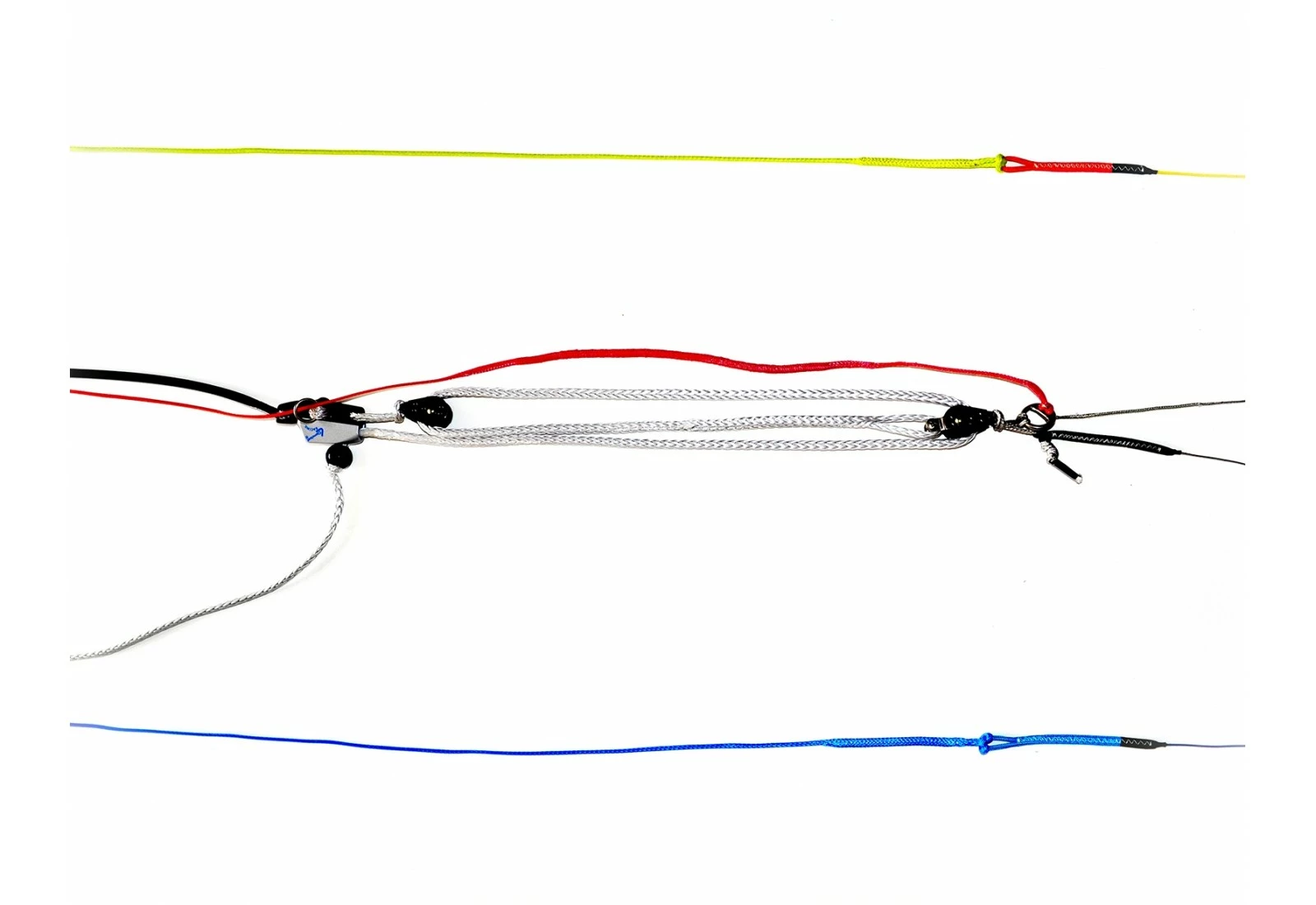 – Vous pouvez connecter les lignes à n’importe quel bridage d’aile, grâce aux « pigtails » intégrés aux boucles des lignes. Si votre bridage comporte des boucles pour les avants, et des nœuds pour les arrières, la barre universelle sait gérer !