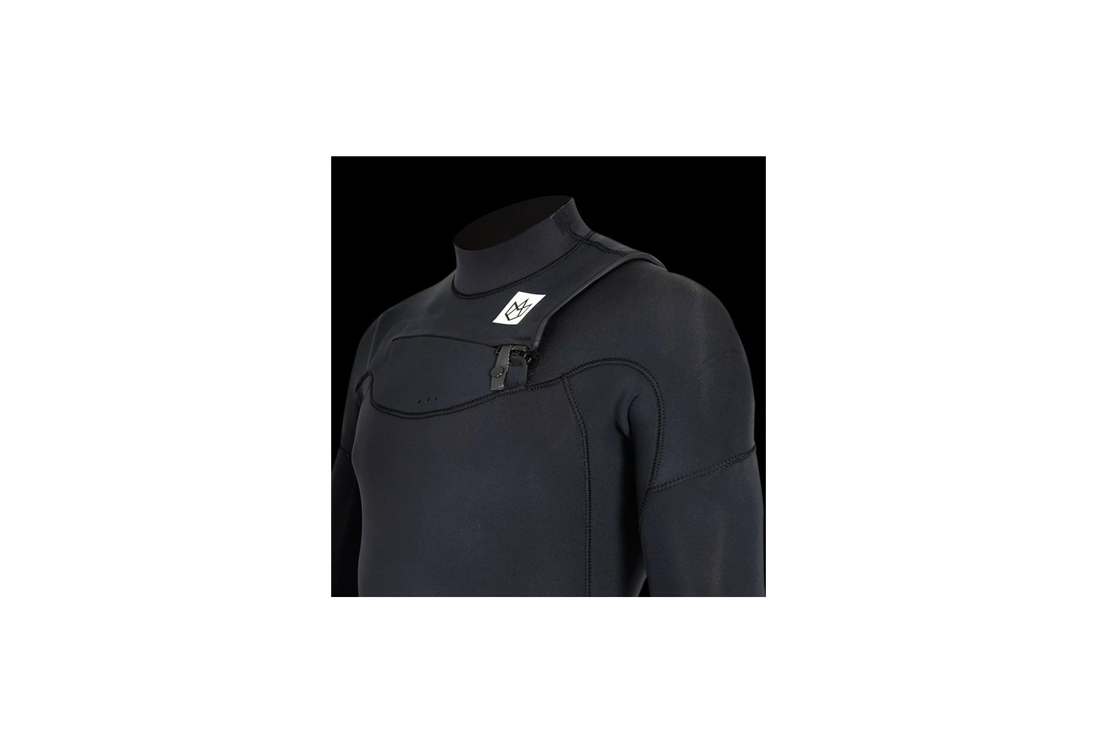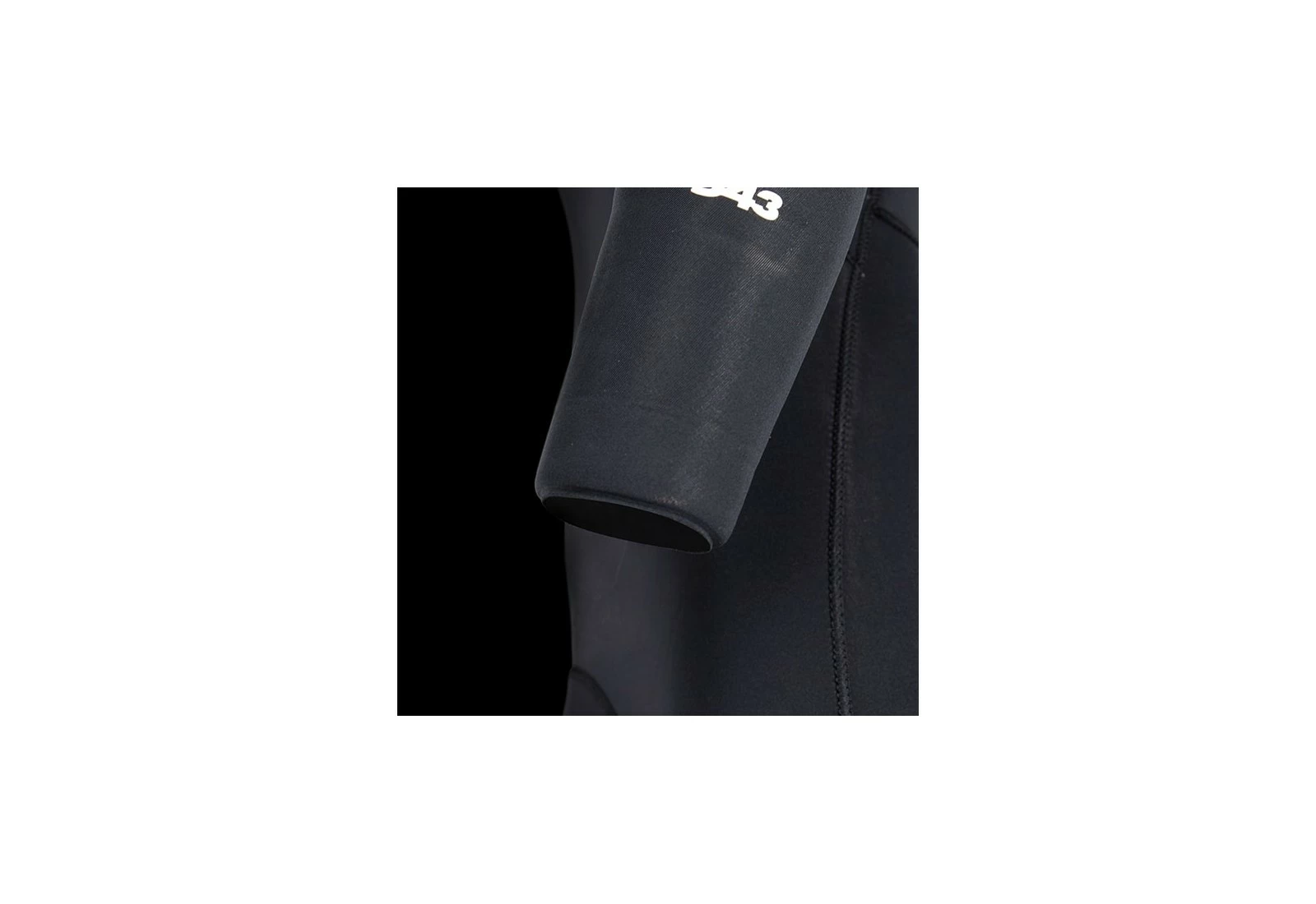 Les différentes couches de néoprène sont fusionnées au niveau des bras et des jambes, cela rend la finition plus fine et plus esthétique. En l’enrobant, elle protège aussi la mousse néoprène intérieure (AIR-FOAM).