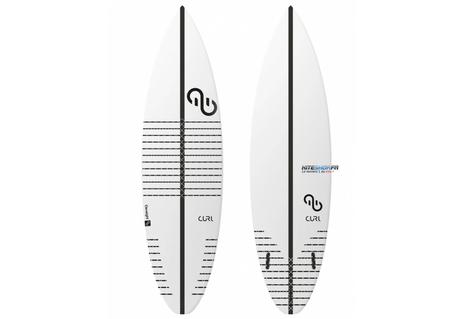 La planche possède une bonne vivacité et une excellente manœuvrabilité grâce à la configuration thruster. Chaque planche de surf Eleveight est entièrement shapé à la main au Portugal. Cette construction permet d’avoir un excellent compromis entre fibre et résine qui rend les planches plus légères de 30% que la majeure partie des planches et tout aussi durable. Le tail, les boitiers d’ailerons futures et le point avant sont renforcés en carbone. La planche Eleveight Curl 2018 est vendue nue (sans inserts, sans ailerons, sans leash et sans pad).