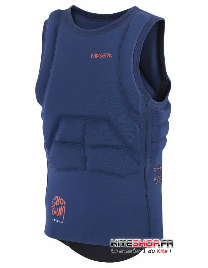La version KITESURF de la veste d’impact Manera est construite avec une zone spéciale sans panneaux de mousse pour laisser passer le harnais sans inconfort.