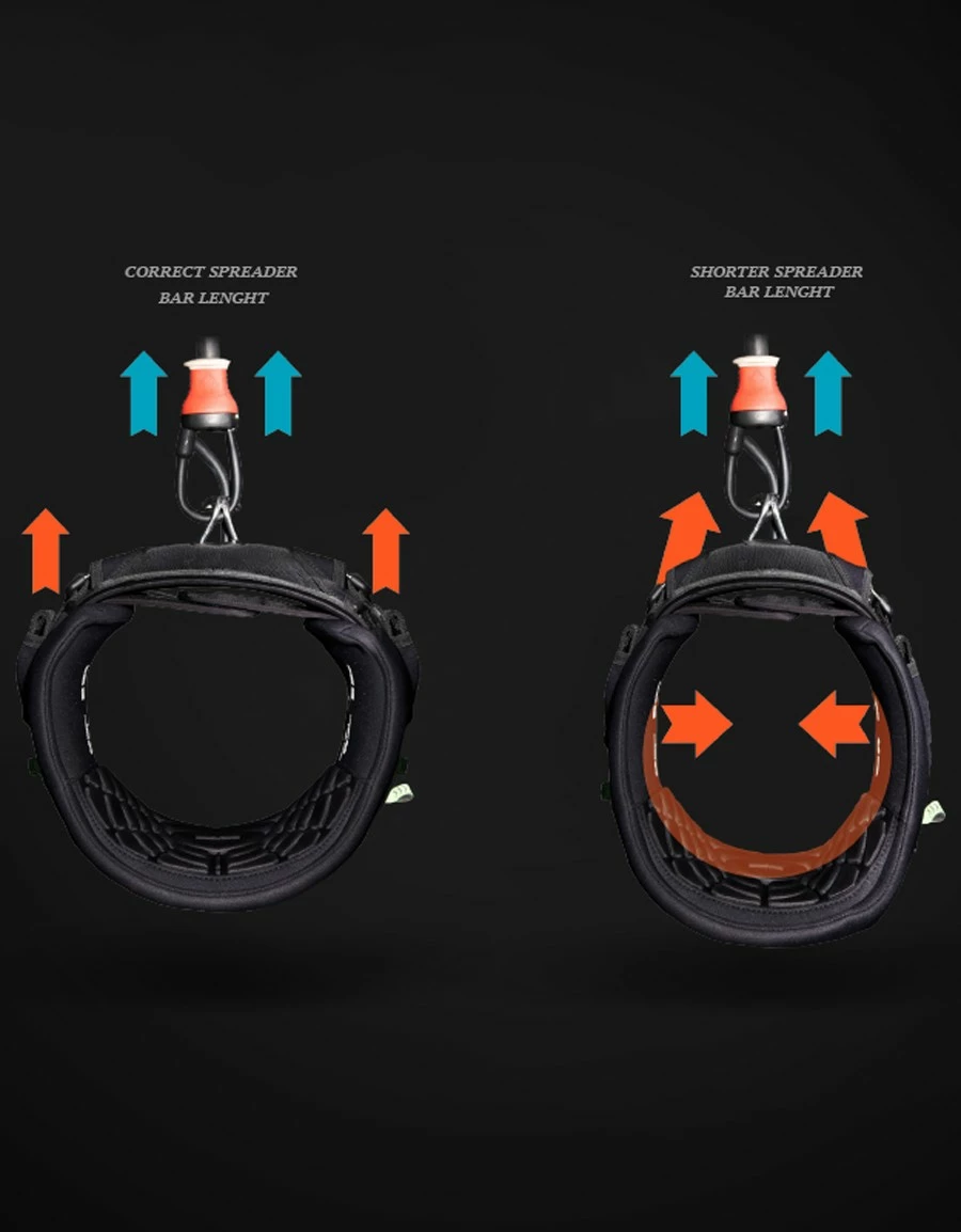 C’est elle qui reçoit l’intégralité des forces, et donc 100% de la traction du kite. Grâce à sa forme et sa structure, les pressions sont réparties sur une zone beaucoup plus large du dos et de manière plus douce et constante. Les forces ne sont donc plus concentrées sur une zone réduite du dos, ce qui protège l’utilisateur et évite qu’il n’ait à compenser en forçant avec ses muscles lombaires.