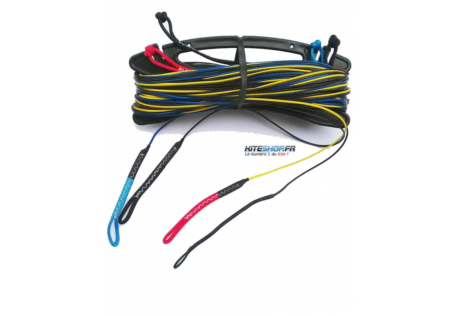 Attention : les barres universelles sont montées avec environ 2 mètres de pré-lignes. Si vous commandez un jeu de lignes, il faut donc ajouter 2 mètres au jeu de lignes pour avoir la longueur de lignes totale sur la barre.