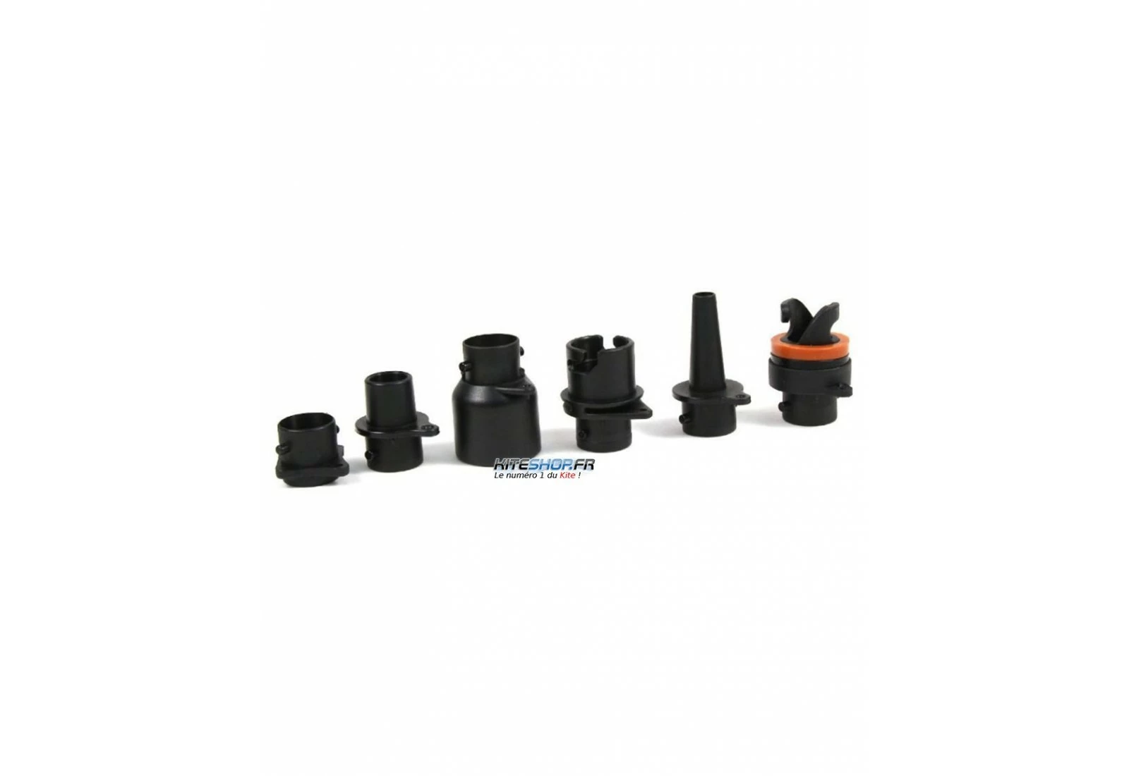 La pompe est livrée avec un sac de transport et un kits d’embouts complet pour s’adapter à toutes les ailes de kitesurf mais aussi aux canoés gonflables, supp paddle et plus encore..