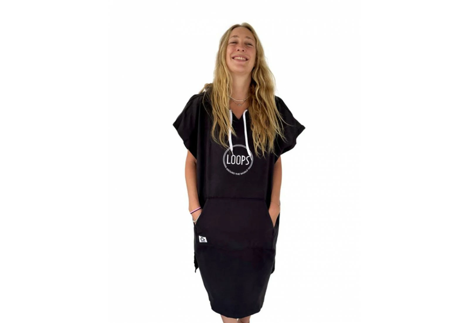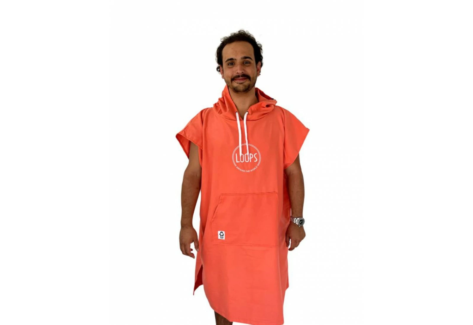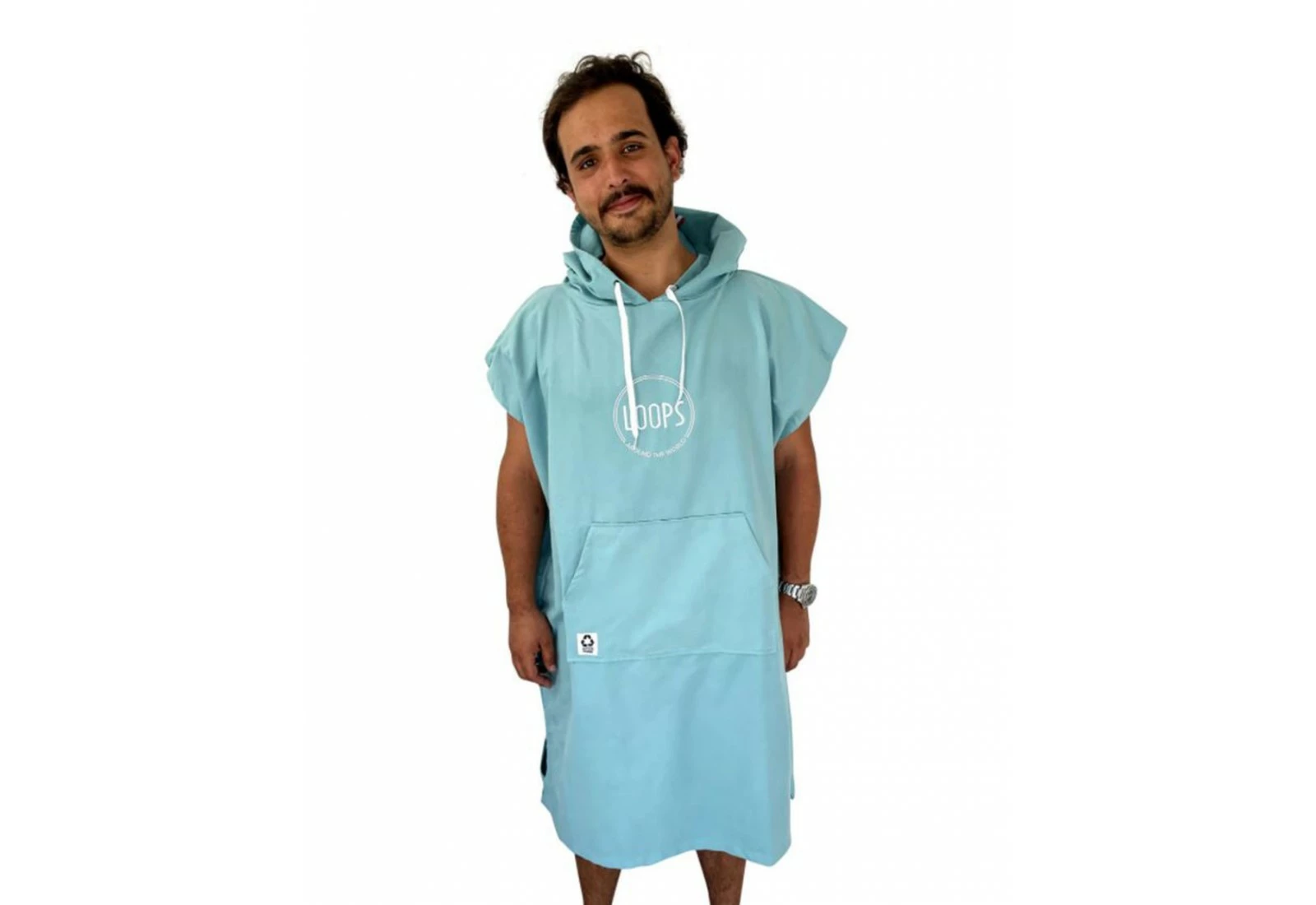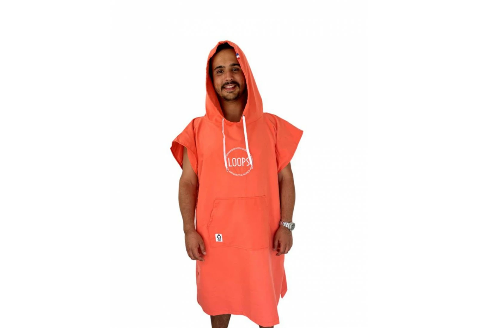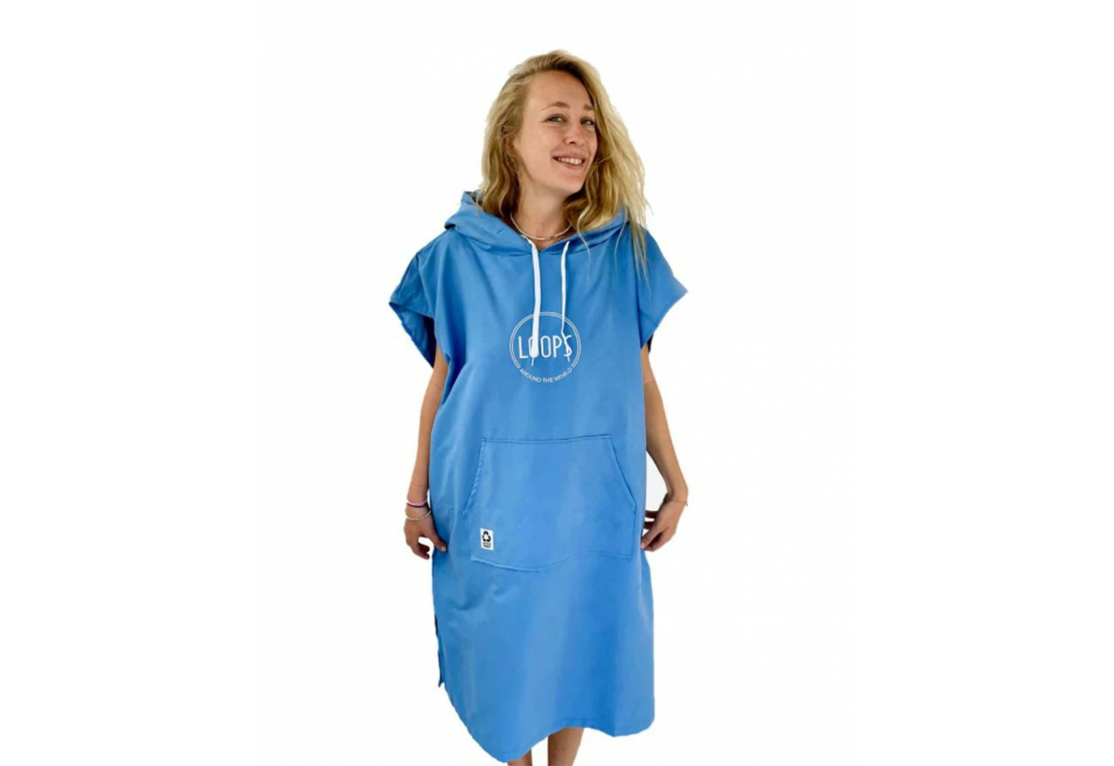 Le poncho Loops est fabriqué en microfibres recyclés, il est disponible en plusieurs couleurs et bénéficie d’une capuche et d’une poche « kangourou » pour plus de confort.